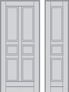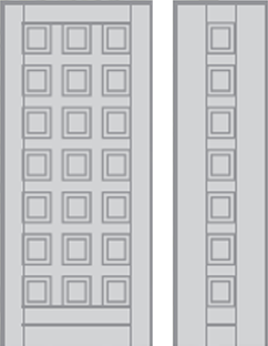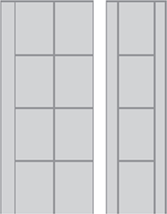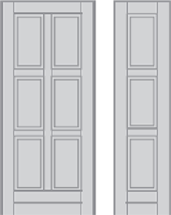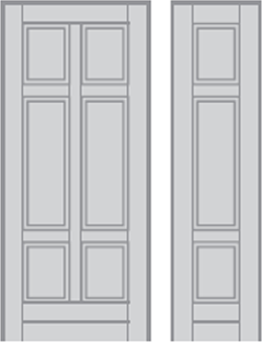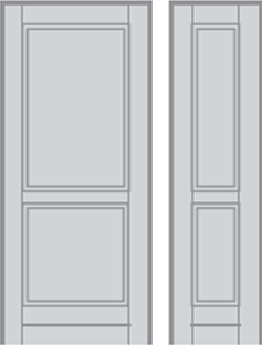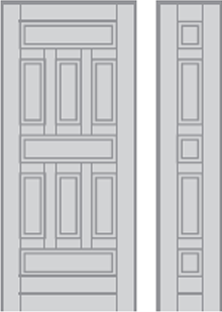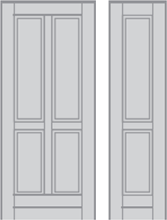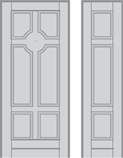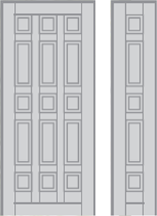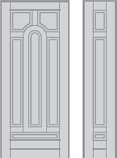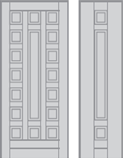 Serie di pannelli a fibre parallele a doppio strato nobile, perfettamente stabili e adatti all’esposizione ad agenti atmosferici. lavorazione con spigoli vivi e finto scuretto a simulare pannelli intelaiati in legno massello.